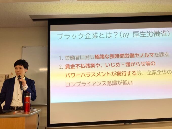 ブラック企業において過労死寸前の長時間労働やパワハラを経験。その経験をもとに大学などでブラック企業の恐ろしさやブラック企業を避けるための立ち回りなどを講演等で解説。