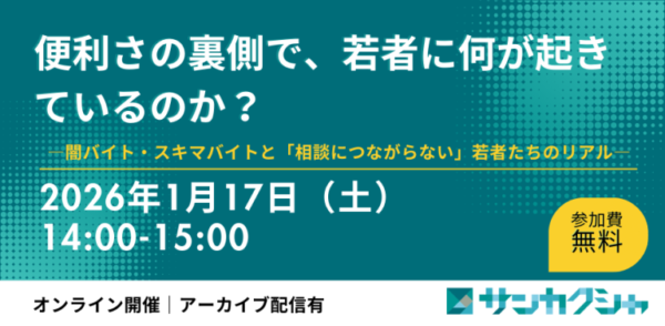 実際に取材・現場を経験してきた記者や、日々若者と向き合うサンカクシャのスタッフが登壇し、雇用の不透明な実態と若者たちの暮らしのリアルを、当事者の声を交えながらお話しします。